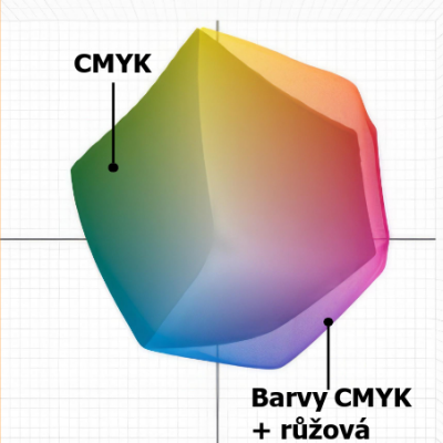 Růžový toner výrazně rozšiřuje barevný gamut, zejména v oblasti červených, oranžových, fialových a modrých odstínů. Výsledné tisky jsou sytější, přirozenější a vizuálně bližší barvám zobrazeným na monitoru (RGB).